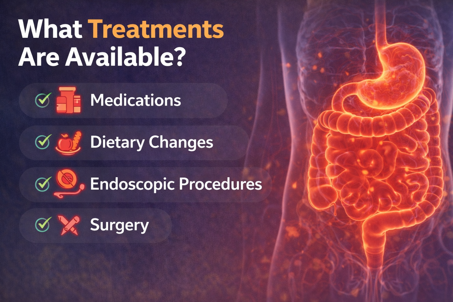 Treatment is based on the condition. There can be medicines that decrease acid, pain, infection, or inflammation.