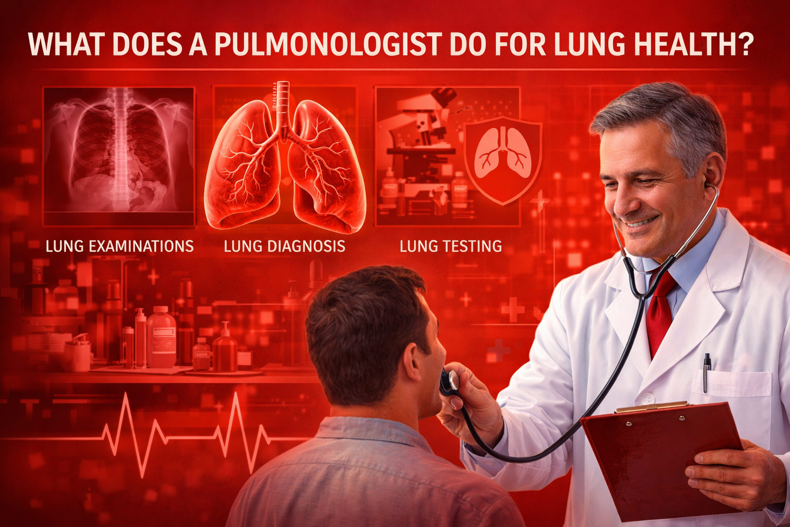 A pulmonologist checks lung health through physical examination, chest imaging, pulmonary function tests, and blood tests to measure how well your lungs are working.