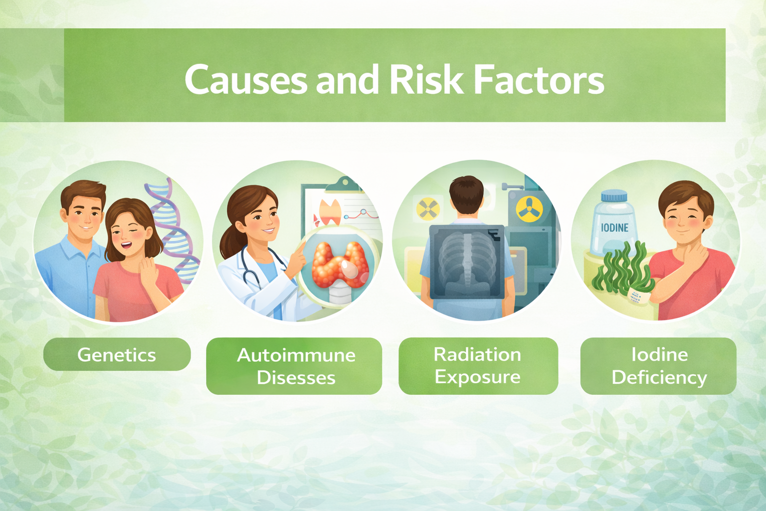 Diagnosis involves blood tests (TSH, T3, T4), ultrasound, and in some cases, biopsy to assess nodules or risk of cancer.