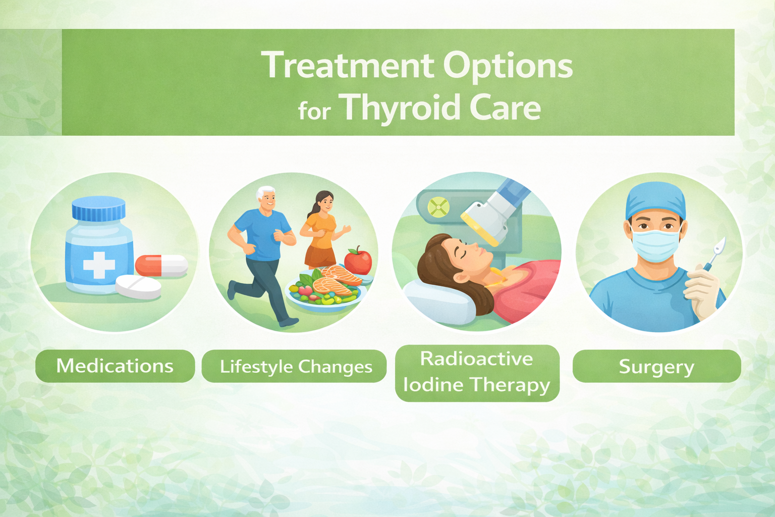 Yes. Hormone replacement, antithyroid agent, radioactive iodine, or surgery is used to treat hypothyroidism, respectively. Recovery is promoted by lifestyle support.